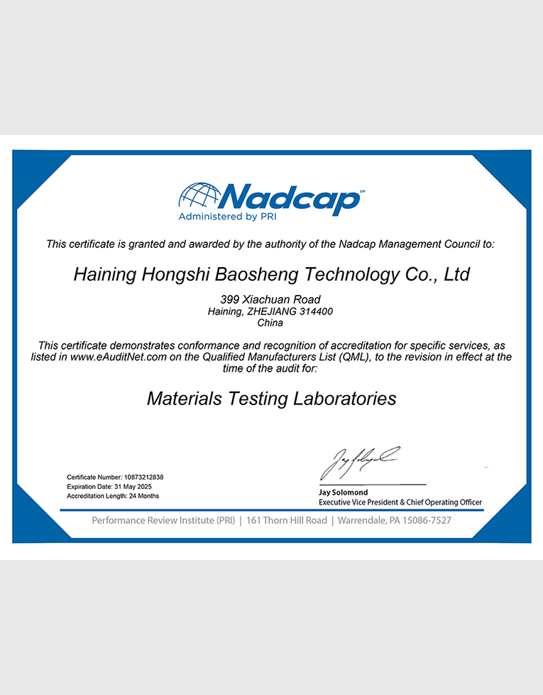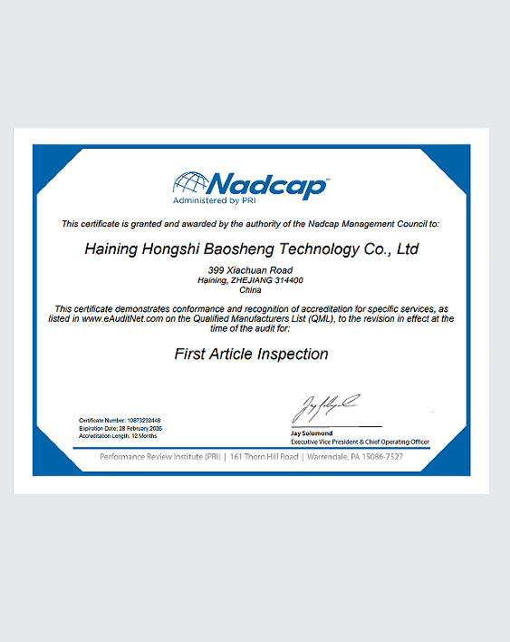 服从质量、合规行事、客户至上、精益求精NADCAP 证书